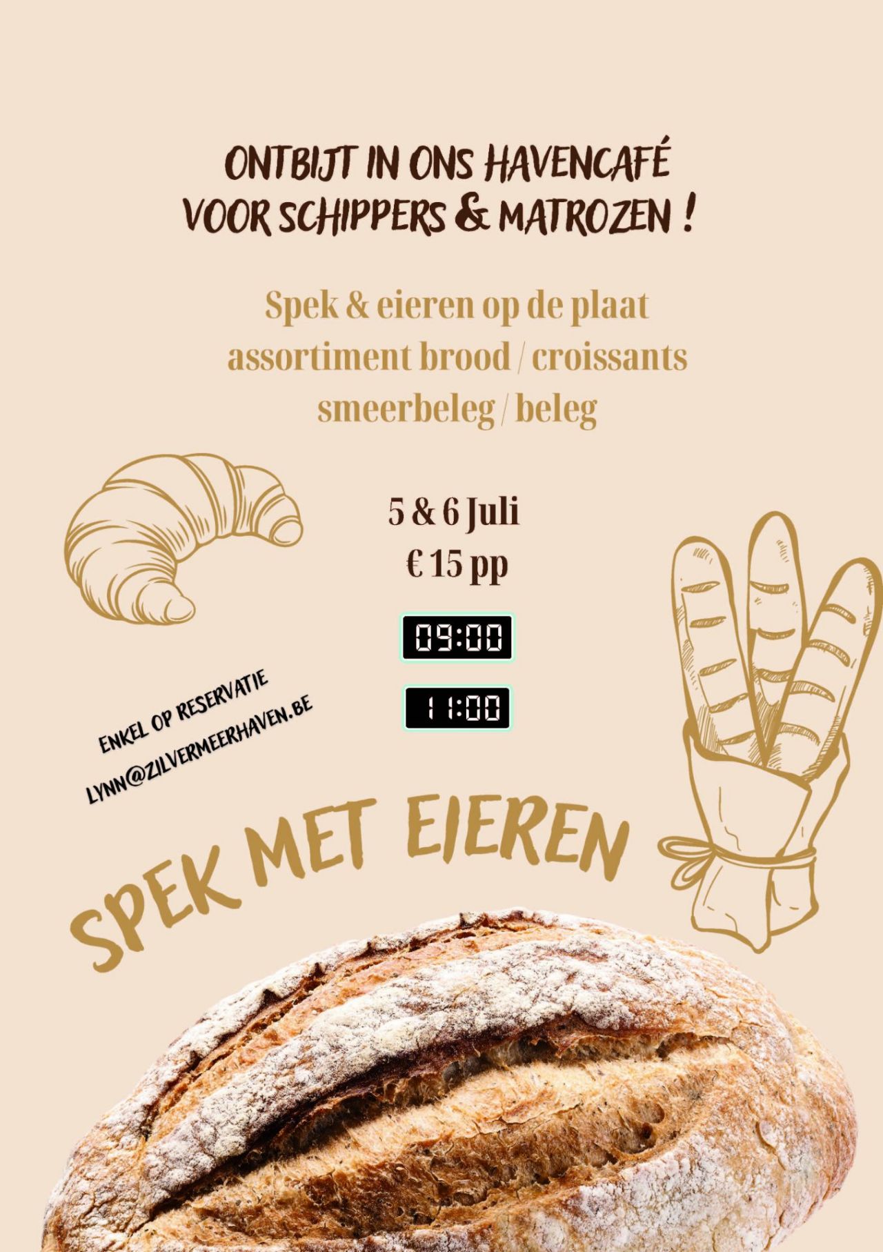 9-11u SPEK & EIEREN. ( Enkel op reservatie in het havencafe vóór 25 juni 2025 ) € 15/pp