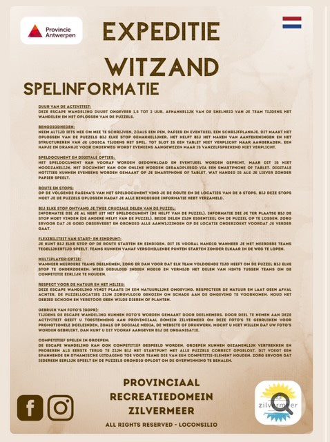 Ontdek de geheimen van het Zilvermeer tijdens Expeditie Witzand: een interactieve outdoor escape game voor jong en oud. Los puzzels op, ontgrendel aanwijzingen en gebruik je fantasie om een eeuwenoude schatkist te vinden in de zandrijke omgeving.
