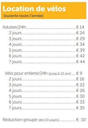 Les vélos peuvent être loués à la réception du camping pendant les heures d'ouverture.