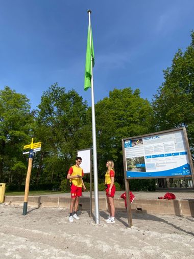 Zilvermeer hijst groene vlag! publish date 02.05.2024 Nu de watertemperatuur 16 graden en meer bedraagt, kan en mag er terug gezwommen worden in de zwemvijver. Onze redders staan paraat vanaf 10 uur.